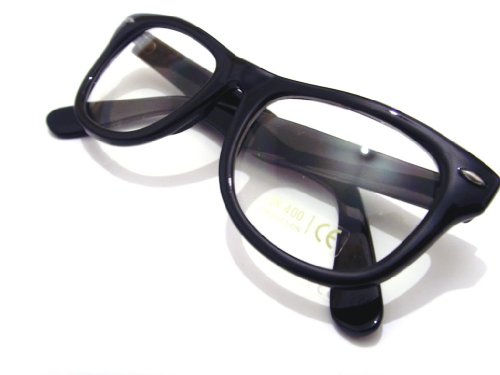 Clear Lens Black Wayfarer Sunglasses 100% UV Protective Lenses. Width 14cm. Height 4cm. For that intellectual, sexy and sophisticated look. Non prescriptive glasses High Endurance Glasses.