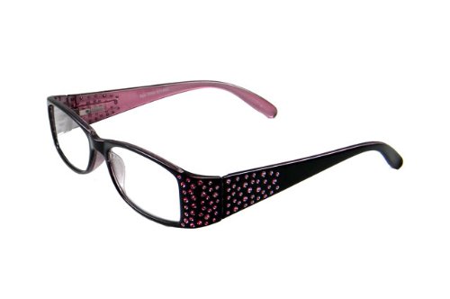 Women's fashion reading glasses. Black high gloss outer frames with pink coloured inner frames & detailing.