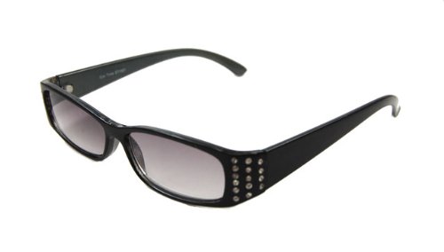 Women's fashion reading sunglasses. Black high gloss frames set with cubic zirconia's