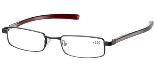 Sunoptic OR49 Black Clear Red on Inner Arms Reading Glasses - Strength +2.00 Including Hard Case