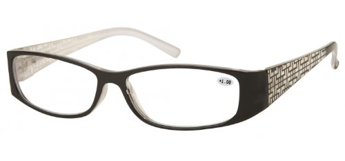 Sunoptic R9C Black Patterned Arms Reading Glasses - Strength +2.50 Including Hard Case